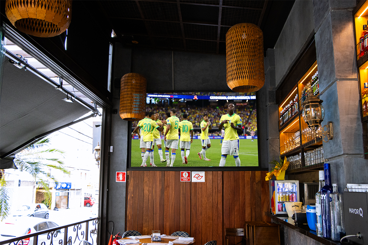 "Se você colocar uma TV comum, seu cliente assiste ao jogo e vai embora. Com a Arena LED10, você oferece a experiência do estádio."